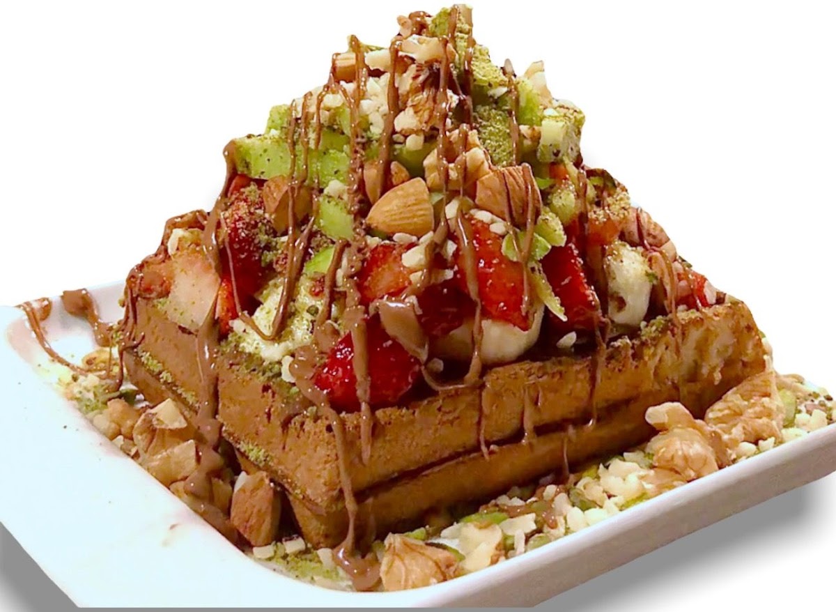 The enticing menu features a range of mouthwatering options, with their signature 'Gold' series of waffles taking center stage. Imagine savoring the Gold1 Waffle, crafted with classic dough, rich hazelnut chocolate, and topped with ripe bananas, juicy strawberries, kiwi, and a drizzle of raspberry sauce. If you lean towards something more classic, the Gold2 Waffle is a wonderful choice, adorned with white chocolate and accompanied by a scoop of plain ice cream, offering a refreshing contrast to the sweetness. For chocolate lovers, the Gold3 Waffle is generously layered with decadent hazelnut chocolate and an array of fresh fruits, promising an explosion of flavors that dance on your palate.
